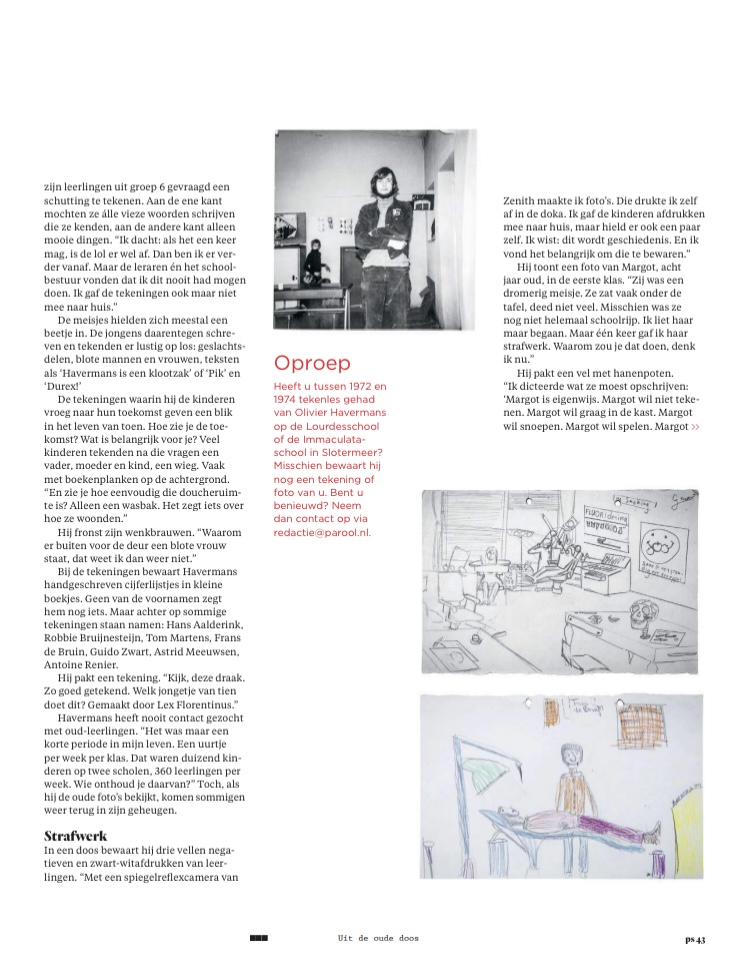 In de jaren zeventig gaf de toen jonge tekenleraar Olivier Havermans (74) les op twee basisscholen in Slotermeer. De kindertekeningen van toen heeft hij nooit weg kunnen doen – ook nu, vijftig jaar later, niet. ‘Ik wist: dit wordt geschiedenis.’https://www.parool.nl/ps/deze-tekenleraar-gaf-50-jaar-geleden-les-in-slotervaart-en-heeft-de-tekeningen-van-zijn-leerlingen-bewaard-ik-wist-dit-wordt-geschiedenis~b9079204/?fbclid=IwY2xjawOVIXlleHRuA2FlbQIxMABicmlkETBnbHNabHlNWUNLYm9WU1NVc3J0YwZhcHBfaWQQMjIyMDM5MTc4ODIwMDg5MgABHibHW93u_zRfNjFnTTpHV9A2KWsr61J-hjPF4LZwa7-a5xmW34AJmPU4p9P-_aem_102MUdVIeaMlPINnw74-_Q