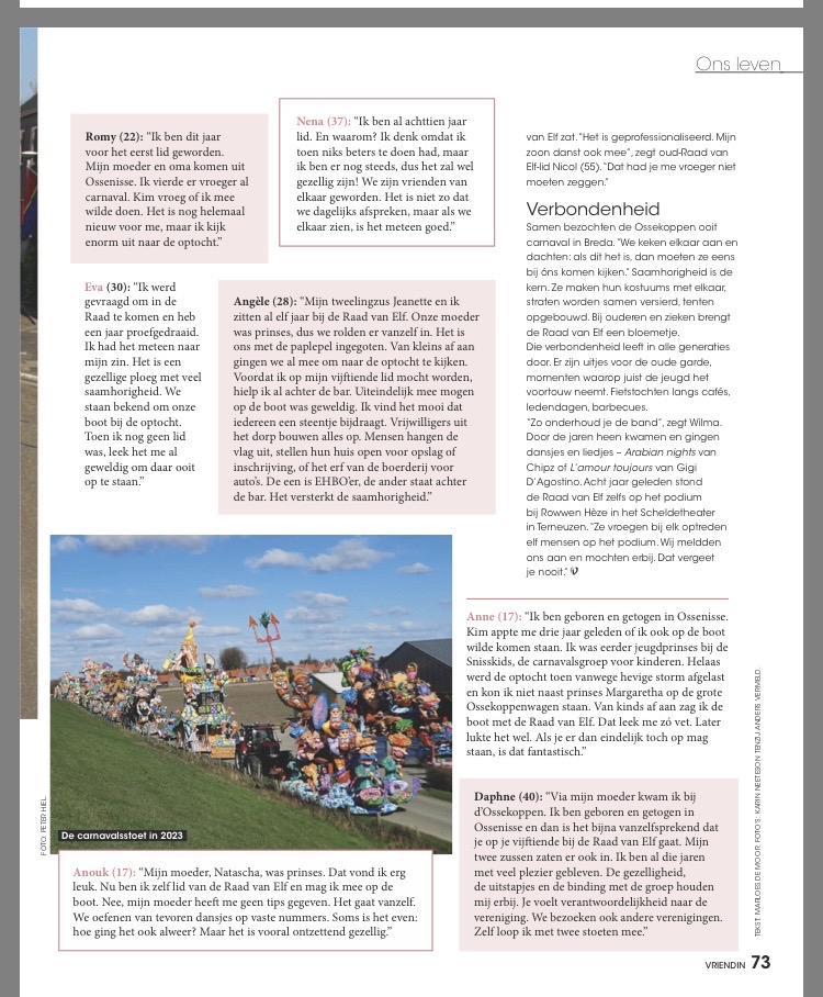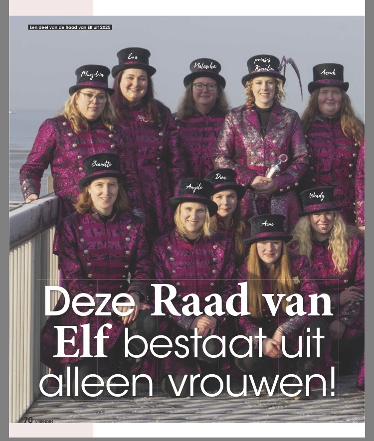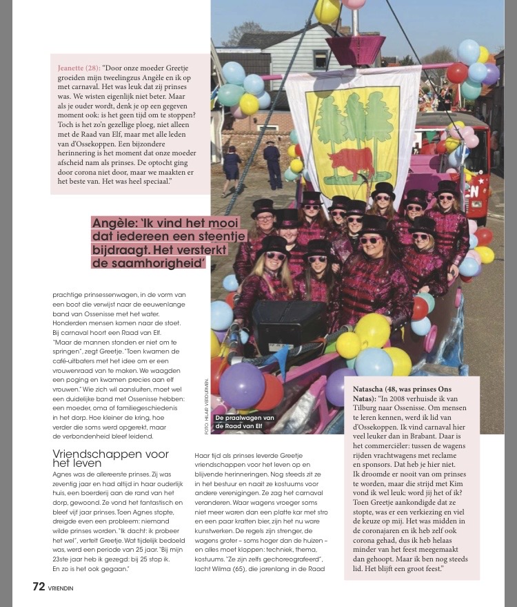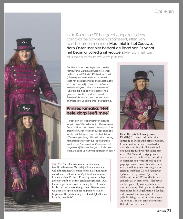 In de Raad van Elf, het gezelschap dat tijdens carnaval de activiteiten organiseert, zitten vanoudsher alleen mannen. Maar niet in het Zeeuwse dorp Ossenisse: hier bestaat de Raad van Elf vanaf het begin al volledig uit vrouwen. Met aan het roer dus geen prins, maar een prinses!